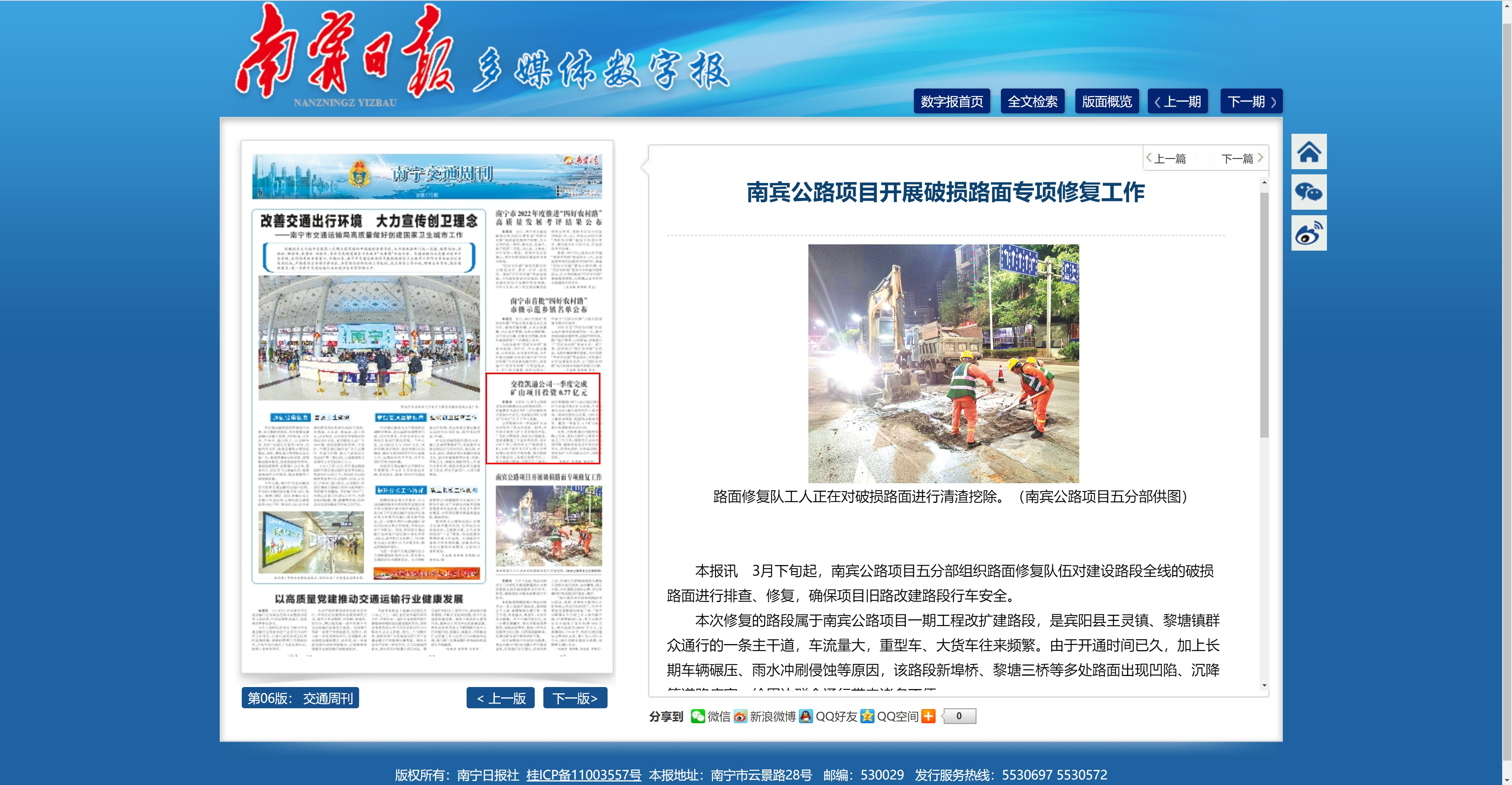 南賓公路項(xiàng)目開(kāi)展破損路面專項(xiàng)修復(fù)工作
